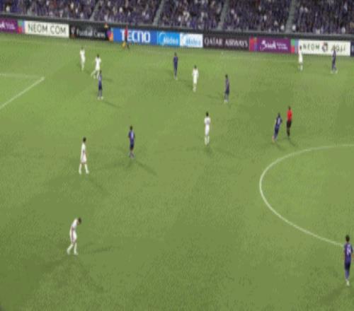 对方后场有空间,加布里埃尔自己带球杀向禁区,随后内切射门完成得分。穆斯卡特的先手安排,至少在面对广岛三箭进攻方向时,取得了很好的效果。
