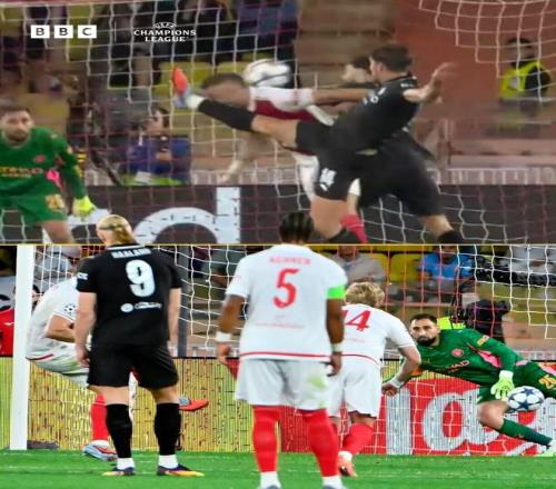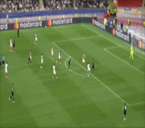 第18分钟,迪亚塔左路传球,特泽弧顶右脚远射轰入世界波,1-1!摩纳哥扳平。