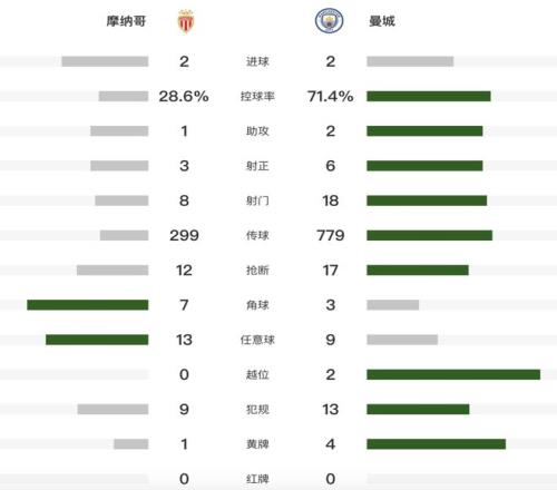 北京时间10月2日,2025-26赛季欧冠联赛阶段第2轮,曼城客场2-2战平摩纳哥,无缘两连胜。哈兰德梅开二度,特泽扳回一球,尼科-冈萨雷斯送点,戴尔点射绝平。
