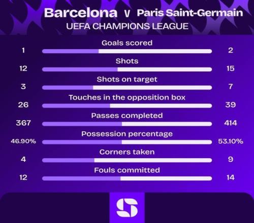 巴塞罗那1比2巴黎圣日耳曼