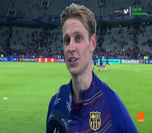 雷速体育10月2日宣 欧冠联赛阶段第2轮,巴塞罗那坐镇主场1-2不敌巴黎圣日耳曼。赛后,巴萨中场弗兰基·德容接受了采访。