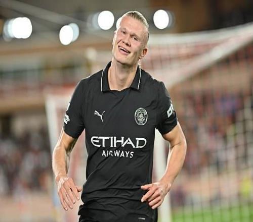 此役客场对阵摩纳哥,首发出战的哈兰德在上半场上演梅开二度,帮助球队最终2-2战平对手。