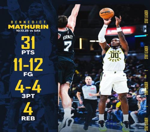 步行者官方也晒出马瑟林这场比赛的数据为他点赞,要知道他此前的两场季前赛,一场一场14分钟拿8分,一场16分钟拿16分,但他全部都已经先发,上赛季他只有49场比赛(合计72场常规赛)先发,新赛季他将锁定先发席位,因为内姆布哈德将打一号位。