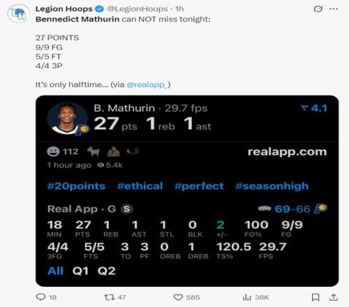 半场9中9+23分钟12中11:马瑟林31分引热议美记称先发是爆发关键