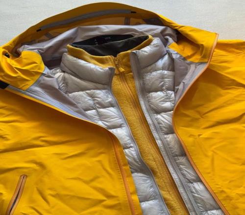 AK SWASH 系列在圈内被称为“五边形战士”, 外层采用了 GORE-TEX 2L 防水透气面料,在躯干部分增加了 Primaloft 银标棉隔层,保暖性一点都不需担心。而内衬使用了 Living Lining 科技面料,它能够根据体温变化主动调节,温度高时微孔张开排汗,低温时收缩锁温维持舒适温度,非常适合极寒环境。