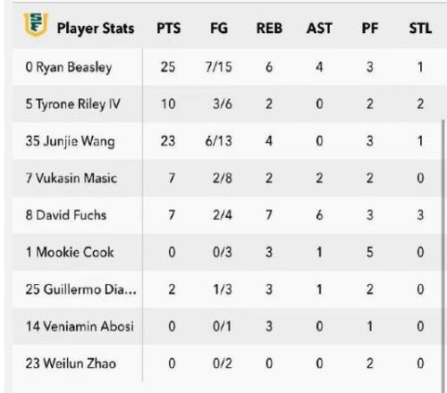 王俊杰轰下23分表现出色,创造他NCAA生涯得分新高,并且4篮板1抢断进账,遗憾未能帮助球队赢球。