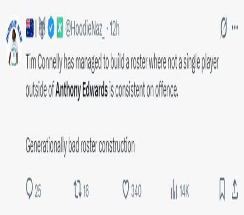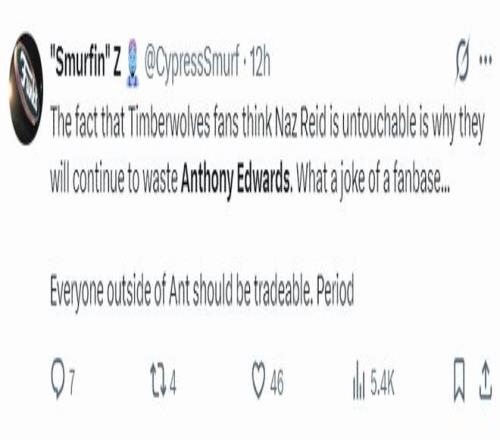 美球迷:森林狼一直都在浪费爱德华兹,他们这群球迷也荒唐至极,这支球队其实除了华子都可以被交易。