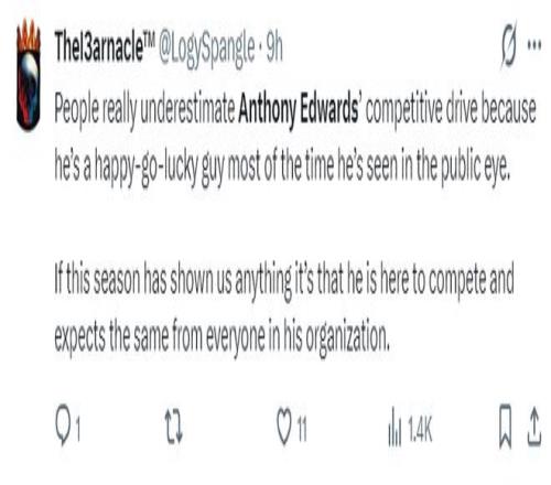 美球迷:人们低估了爱德华兹的竞争动力,他的肢体语言就是告诉外界他希望能竞争,而且他希望阵容中的每个人都有这样的竞争意识。