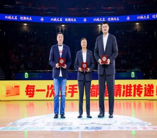 李秋平、姚明、章文琪三位俱乐部功勋教练员、运动员被授予功勋纪念章